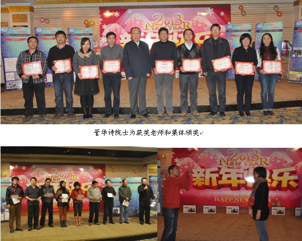 首先,吴强明书记向广大教职工致新年贺辞。吴书记在贺辞中总结了过去一年里学院各项工作取得的可喜成绩,充分认可和赞扬了广大教职工团结齐心、凝聚智慧、共谋学院事业发展所作出的努力和辛劳,并对学院事业在即将到来的2013年中取得更大发展寄以殷切希望和充分自信,相信在新的一年中,学院的发展将迈向新的台阶,取得更大的辉煌。接下来,常务副院长于广利教授宣读了《威廉希尔关于授予王�等2012年度学院发展贡献奖的决定》,表彰奖励2012年度中在教育教学、科学研究及产业化开发、党政管理等工作中涌现出的先进个人和团体,院长管华诗院士为获奖老师和集体颁奖,并希望全院教职工以先进为榜样,以极大的热情投身到工作中,进一步增强责任感与使命感,为学院发展做出更大的贡献。也希望受表彰的个人与团体发扬成绩,戒骄戒躁,开拓进取,再创佳绩。