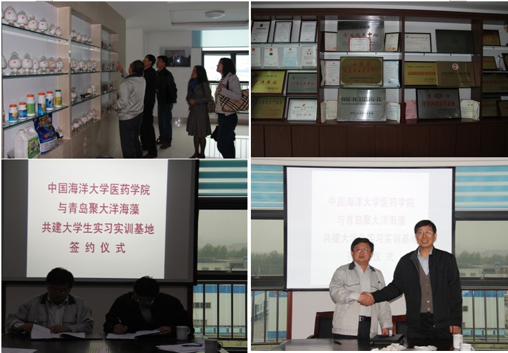 5月18日上午,威廉希尔常务副院长于广利教授、党委刘日霞副书记、副院长李筠教授、2009级药学本科生实习带队教师方玉春,以及班主任刘云章老师,来到青岛聚大洋海藻工业有限公司,洽谈威廉希尔与聚大洋合作开展本科生实习实训的相关事宜,于广利教授一行受到聚大洋公司吴仕鹏董事长、吴年喜副总经理的隆重欢迎。