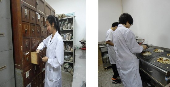 在两天的时间里,同学们基本掌握了各自部门的工作流程,认识到实际工作与课堂学习的差距,并努力将理论知识与实践联系起来,对药学专业有了一个更加全面的认识。草药房的一位同学提到,虽然曾经学习过生药学,但是中草药的名字与样子总是对不上号,经过两天的抓药工作,已经可以熟练辨别十几味常用药了;也有同学表示,尽管时间不长,该实习活动能帮助自己重新定位,为以后走进社会打下良好的实践基础。