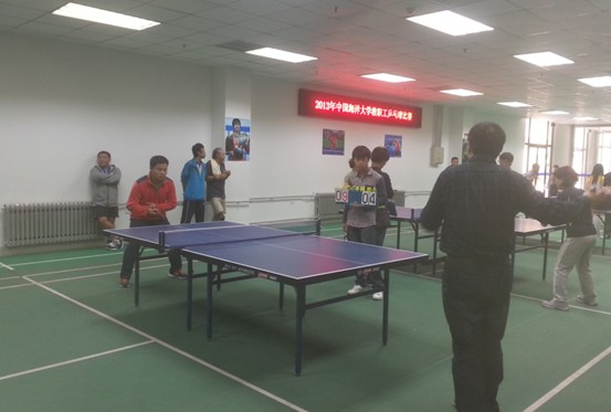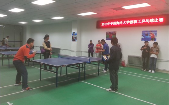 为了丰富我校教职工的业余文化生活,增强教职工身体素质,经教职工乒乓球协会申请,校工会批准,学校于2013年10月24日下午在崂山校区教职工俱乐部举行了教职工乒乓球赛。本次比赛分为:男子单打、女子单打和团体比赛三项。