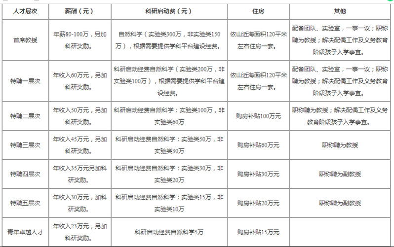 2.高层次人才实行年薪制。学校根据学术成果、工作目标,采取一人一议的方式提供具有竞争力的工作条件和生活待遇。