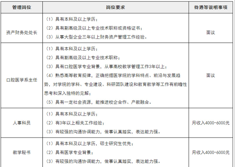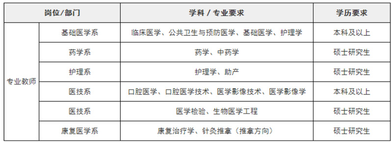 2.副高级及以上职称人员,紧缺专业:口腔医学、护理学、临床医学等专业(硕士)不受时间限制,全年招聘。