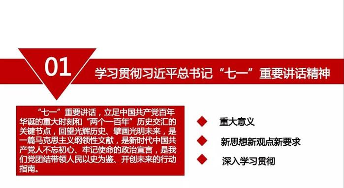 此次的“开学第一课”主题会议共分为“七一”重要讲话的重大意义、习近平总书记提出的一系列新思想新观点新要求、疫情防控知识与管理要求、心理健康教育几大板块。会议伊始,老师们先讲解了习近平总书记“七一”重要讲话的重大意义,加深了同学们们对中国共产党成立的历史意义和深远影响的认识,通过播放视频让我们学习中国共产党这一百年来的艰辛路程,更让人意识到中华民族的前途和命运是靠自己的奋斗争取来的。