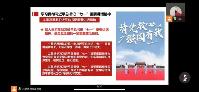 通过此次“开学第一课”主题会议的顺利举行,同学们把握时代要求,深入学习贯彻了习近平总书记“七一”重要讲话精神。另外也严格遵守疫情防控要求,积极调适心理状态,为新学年的开始做好准备。