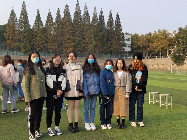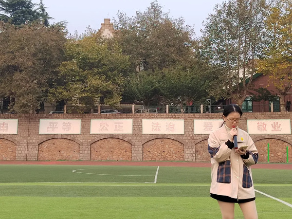 随后而来的就是大家最为期待的游戏环节。在主持人宣读完规则后,第一个游戏“寂静中的呐喊”迅速拉开序幕。每组各自选出六名同学出战,逐个将第一名同学看到的一段经典文字片段传递下去并由最后一名同学说出所记忆的内容。过程中同学们或出现偏差,或自由发挥的内容引得大家开怀大笑,操场里充满了大家的欢声笑语,寒冷的天气也因为同学们的默契而温暖了起来。