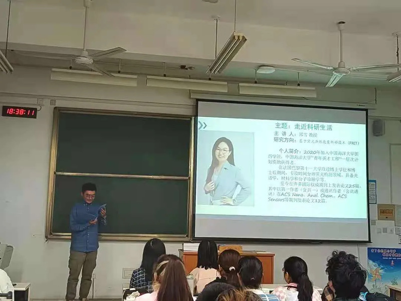 活动伊始,主持人侯路开(2021级药学1班)简要地先向大家介绍了邱雪老师的研究方向等相关信息,而后通过播放了有关邱雪老师实验室中的研究生学习、科研生活的视频,同学们了解到了研究生的科研生活节奏,为研究生阶段的学习规划奠定了一定的基础。