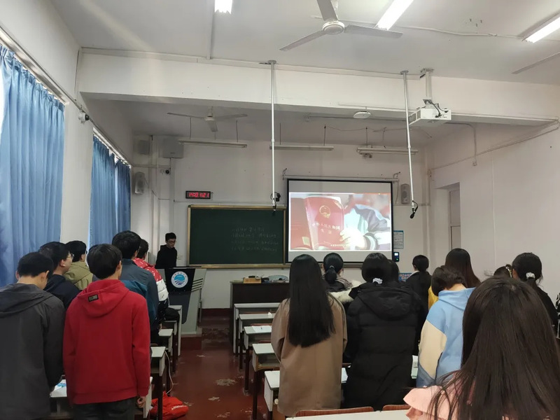 之后,宋建业和同学们一起学习了国家爱宪法日暨全国法制宣传日。他向大家介绍了以全国法制宣传日为代表的国家普法活动的发展历史,让大家了解到每年的12月4日是国家宪法日,也称为“宪法宣传日”。这一天将重点开展宪法宣传活动,对宪法知识的宣传推广无疑具有重要的意义。
