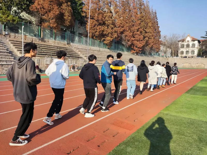 首先,同学们进行了简单的热身活动,各组依次排成一列沿操场跑道小跑一圈。大家在跑步过程中逐渐活跃了身体和心理,迅速进入了运动的状态。操场上洋溢着激情火热的气氛,给寒冷的天气带来了一份宝贵的温暖和热情。