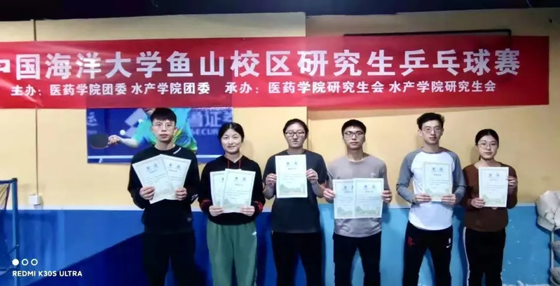 12月2日下午,中国海洋大学鱼山校区研究生乒乓球赛于鱼山校区学术交流中心乒乓球馆举行,本次比赛为乒乓球爱好者提供了展示自己的平台,比赛过程中,选手各显身手,展现了良好的球风和体育道德。最终,男子单人组、女子单人组和男女混双组分别决出冠、亚、季军各一名。