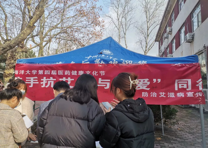 线下有奖知识问答及投票环节于11月29日11:30-13:30在鱼山校区师苑餐厅门口顺利进行。广大师生踊跃参与,通过现场宣传、有奖问答、横幅签字等活动形式使同学详细了解了艾滋病传播途径与预防措施等防艾知识。
