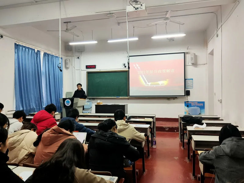 随后,宋建业向同学们介绍了国家的征兵政策。他详细解读了征兵的基本条件和优待政策,鼓励有志向当兵入伍的同学积极应征,在保卫国家的事业中燃烧自己的青春,为国防建设贡献自己的力量,同时收获宝贵的荣誉和丰富的阅历。