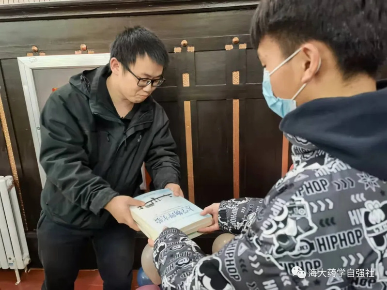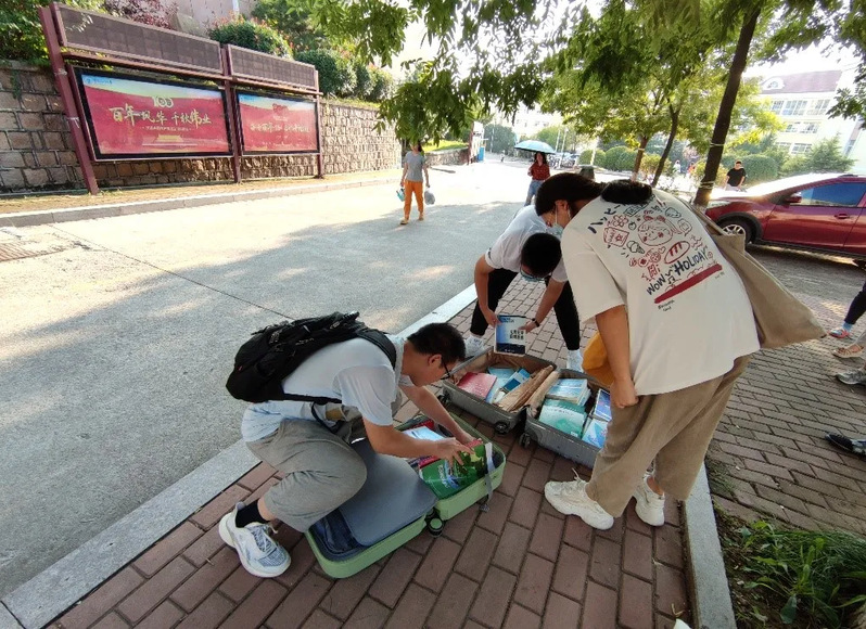 2021年12月,自强社成员于鱼山校区完成书籍分发。
